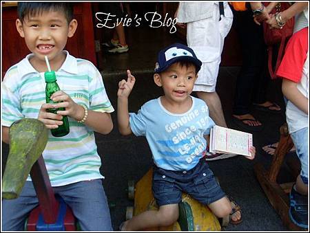 騎木馬的兩兄弟~這是哥哥第一次喝彈珠汽水!!!難得爸比允許讓他喝汽水,哥哥好高興喔!!!!
